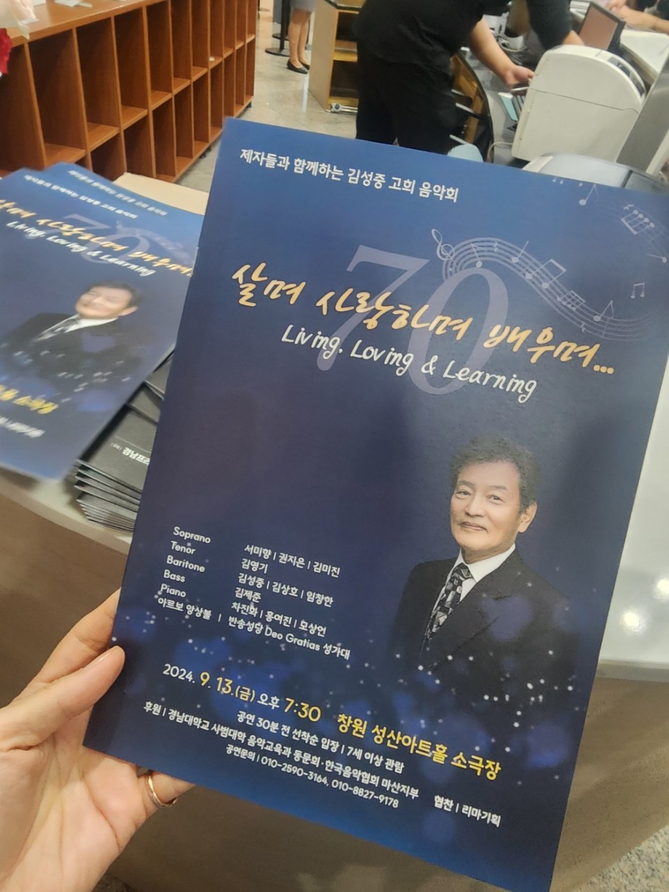 어제 김성중교수님의 고희기념 음악회에 마고제자 바리톤 창한이가 출연한다고 해서 다녀왔다.
