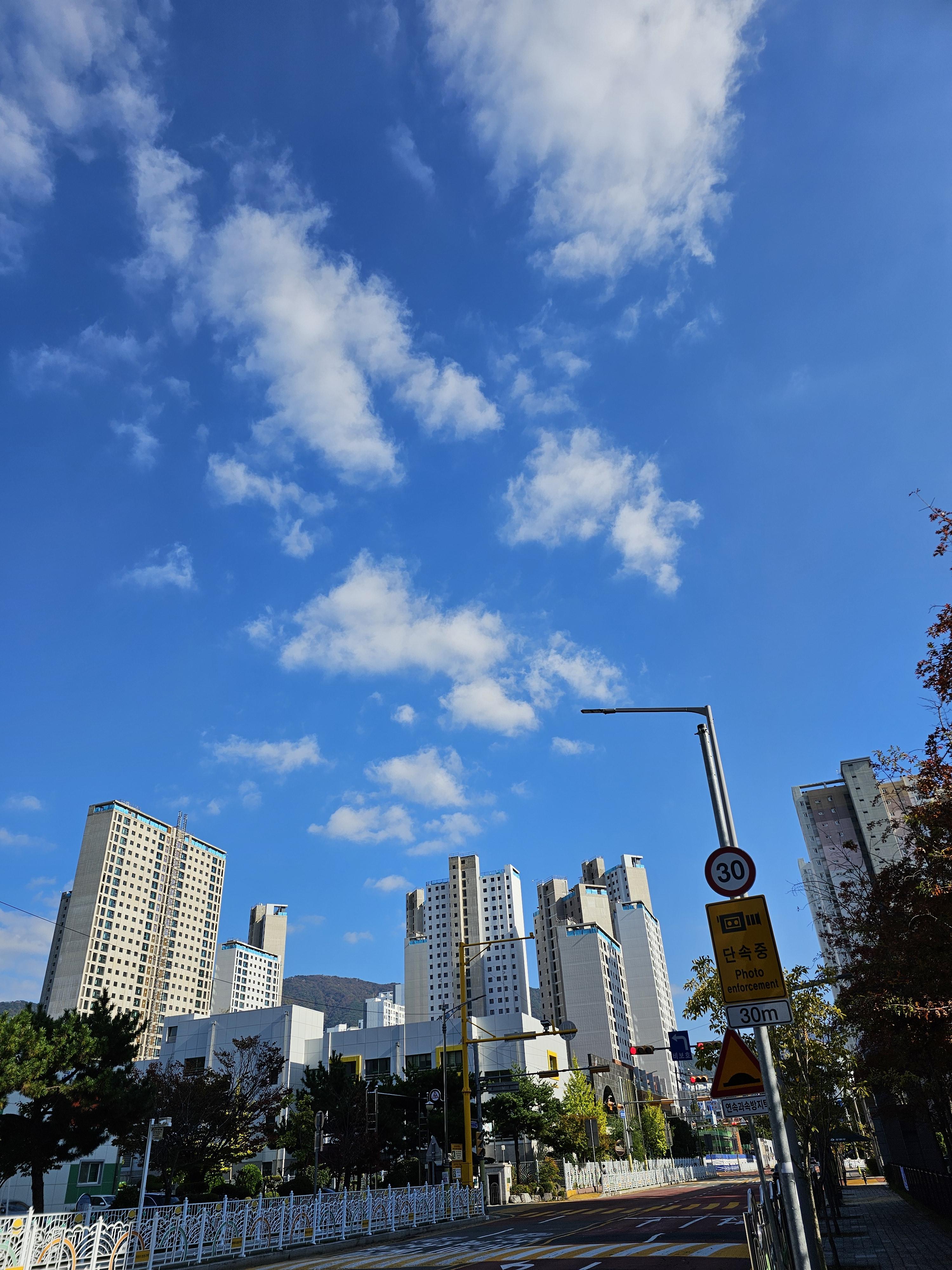 집으로 돌아오는 길에 올려다 본 파아란 가을 하늘이 넘 예쁘다.