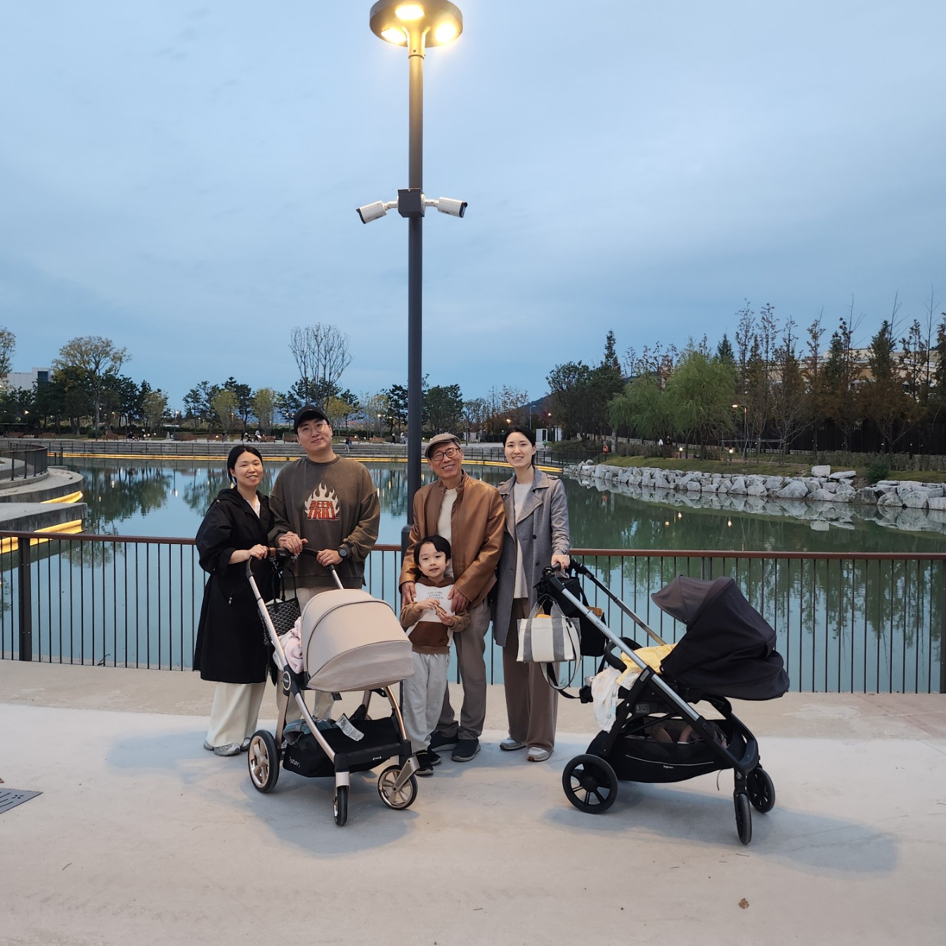 창밖으로는 보이는 산책로가 넘 아름다워 우리도 아기들을 유모차에 태우고 산책을 시작했다. 땅거미가 지면서 조명이 커지니 주변이 꽤나 운치가 있다.