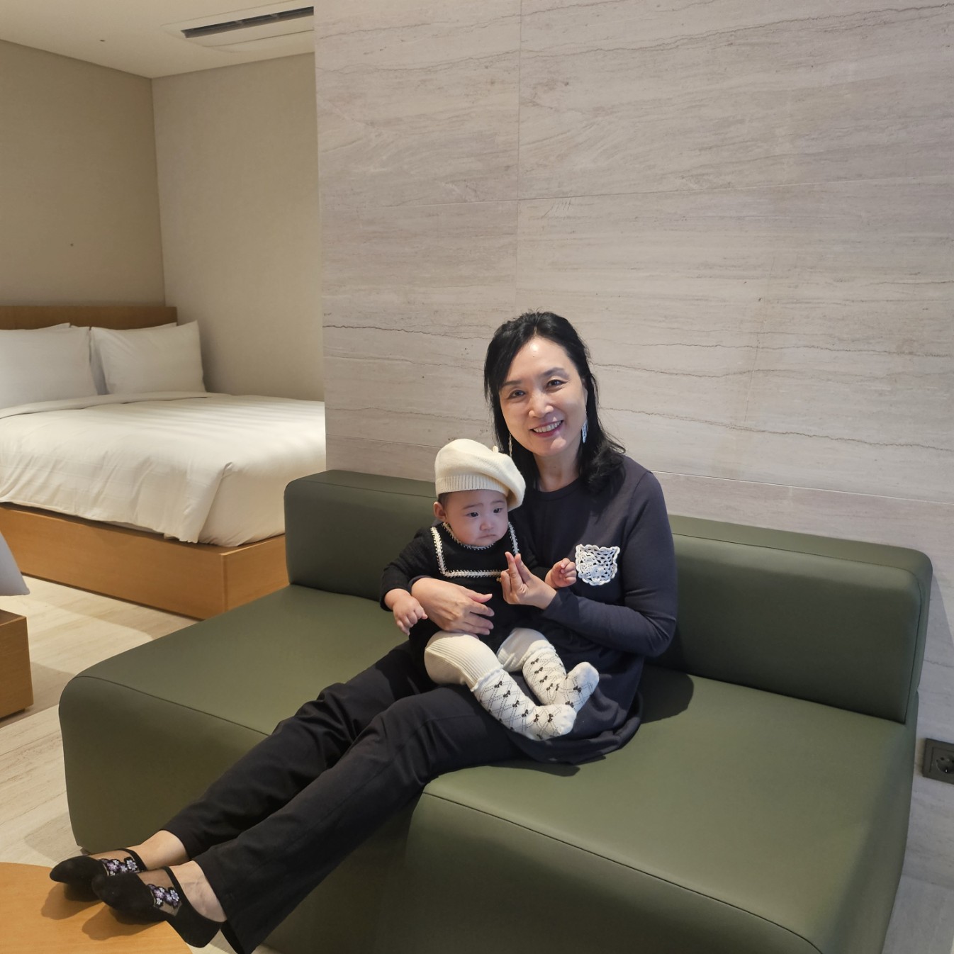 늦은밤이 되어서야 각자의 방으로 돌아오니 아들과 며느리는 자다깬 아기를 쉴새없이 토닥이다 겨우 잠이든다.