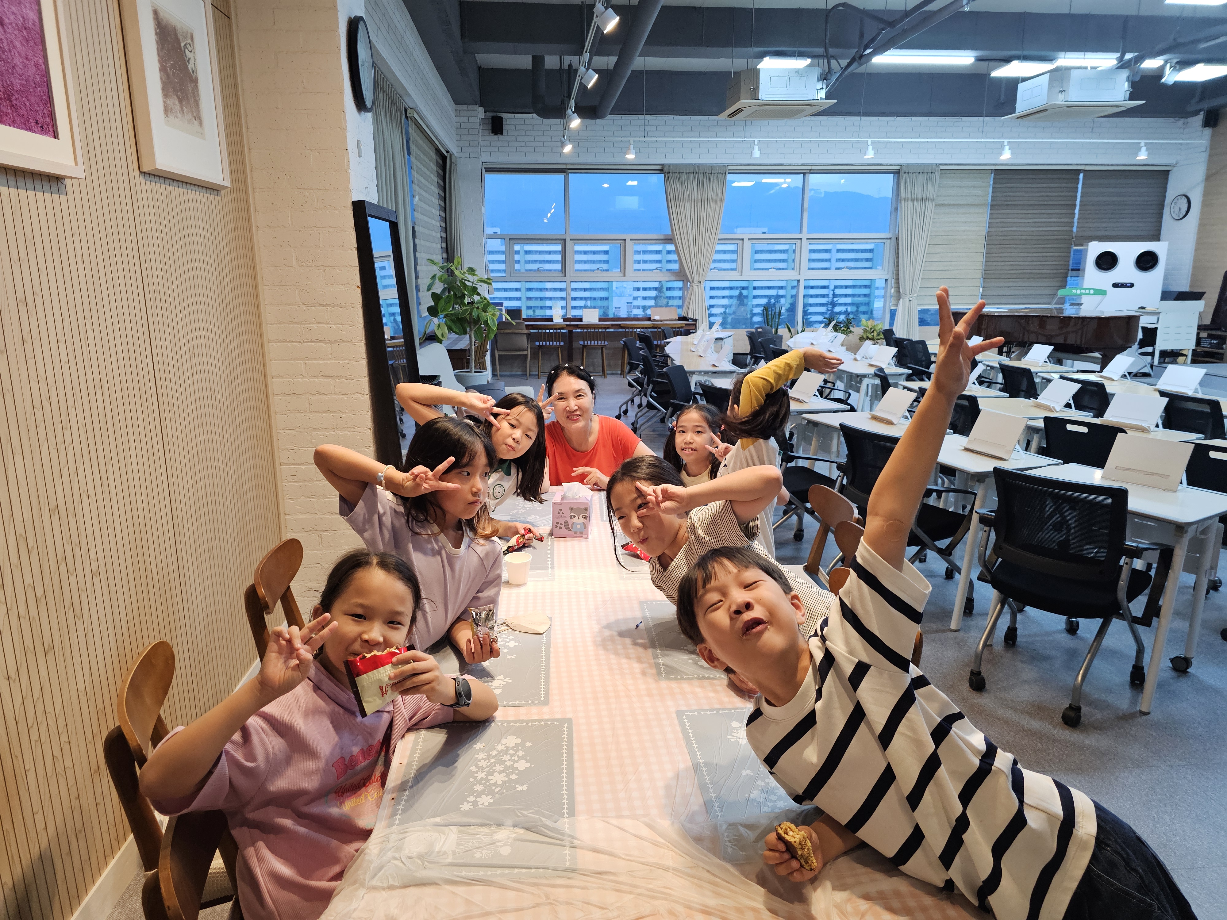 모두 배고픈 시간이라 과자를 한 개씩 나눠 먹은 후 자리로 돌아와 인사를 했다.