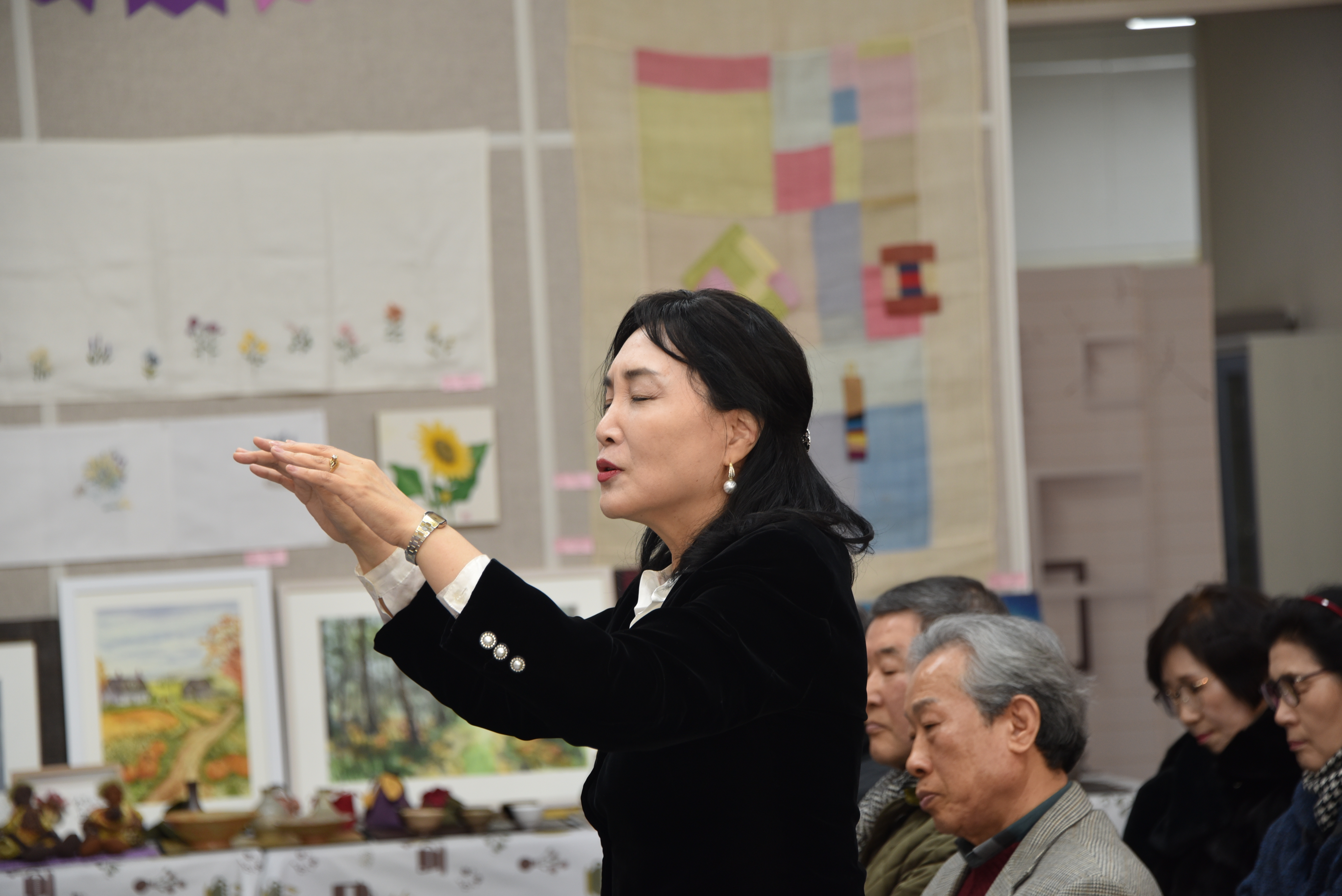 서예,도자기,사진,민화,소공예와 같은 단원들의 작품이 전시되어 있다.